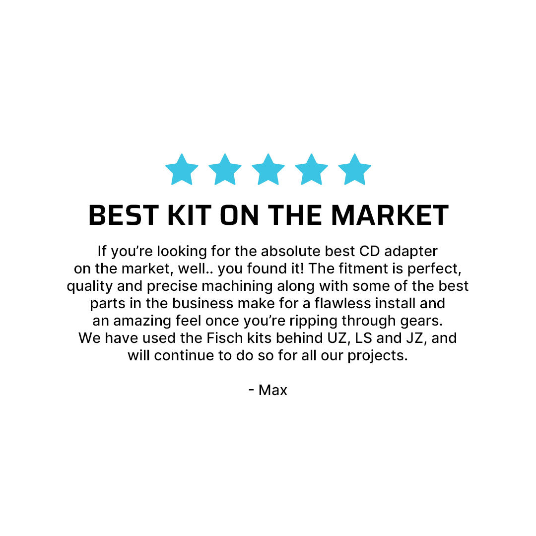 When I initially started my rotary swap on my Toyota 86 I wasn't sure what transmission or swap kit I could use since its so uncommon. But then I stumbled upon Fisch Racing and after doing research and talking to the team about the adaptor kit I knew this was my best option. Once I received the kit everything in the kit was as explained which made this a very easy conversion. The fit and finish is amazing instructions where clear to get the best results. the installation process is actually very easy which only took me about an hour to complete. And the bleeding process was just as easy too once the transmission was installed in the car bolted right up and worked with no issues. I honestly have no complaints at all and with the added inspection plate it made it super easy to verify that everything was working fine. The customer support has been amazing if I had any questions. After installing I haven't had any issues at all its been a great experience I will soon have another video coming out with a more in depth dive into the swap itself!